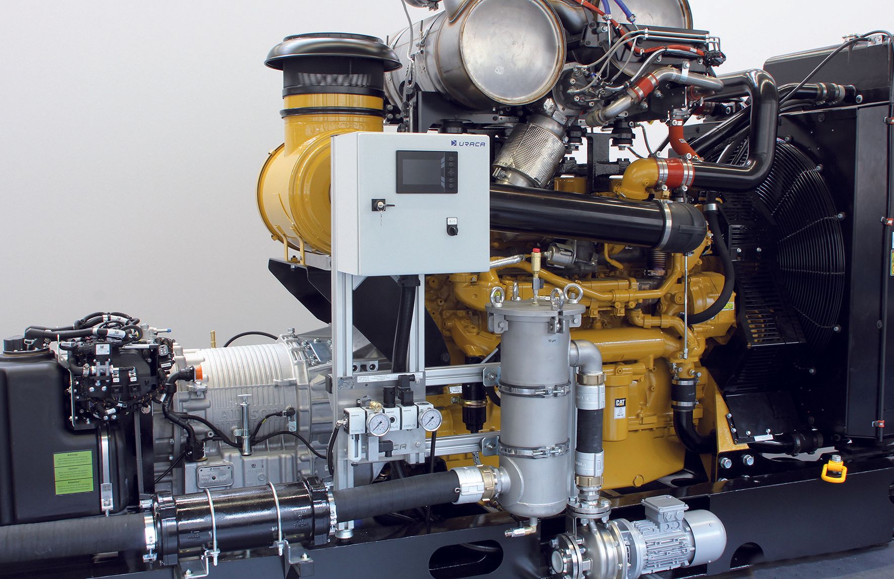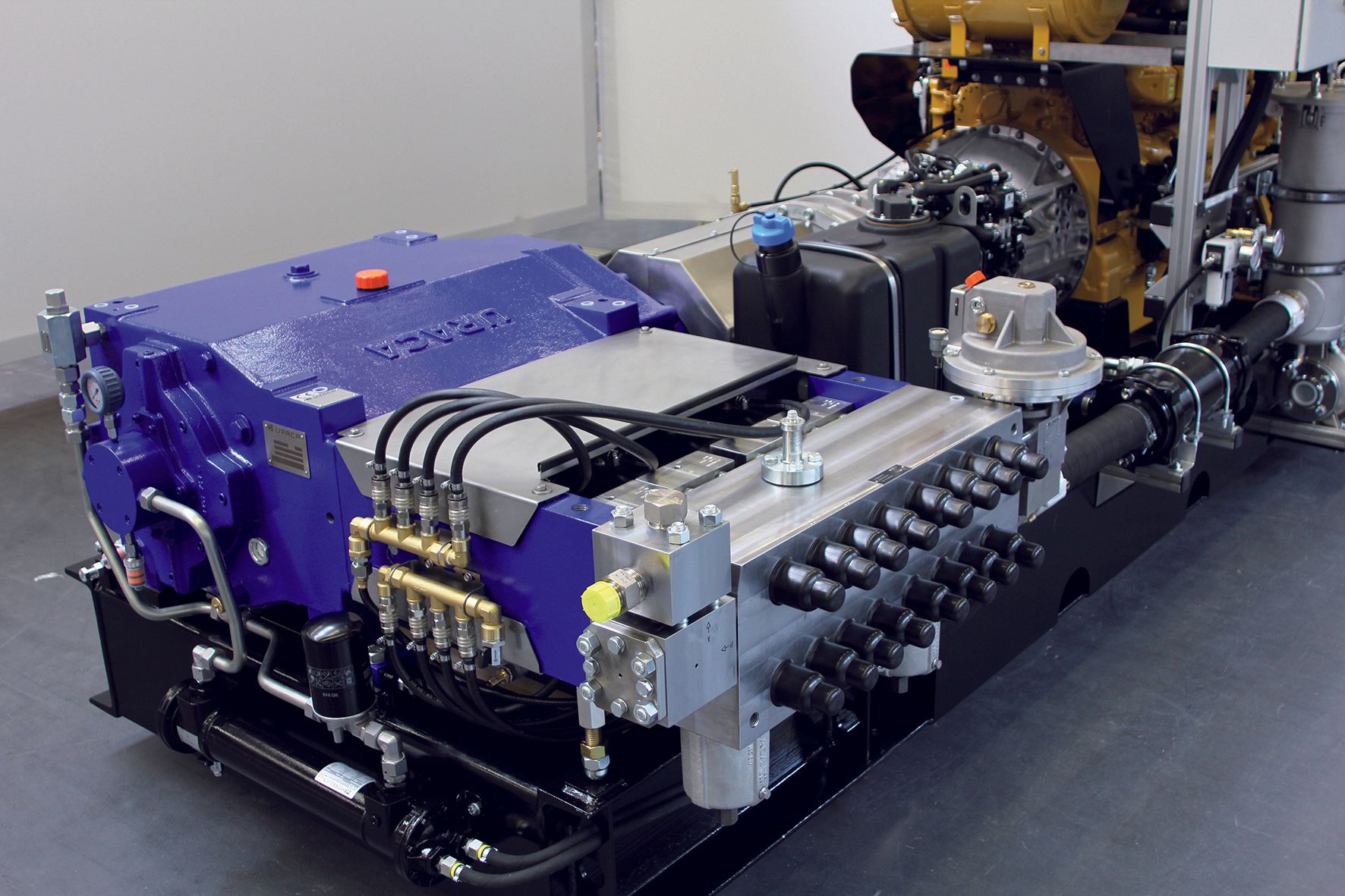 Насос установлен на раме, полностью со всеми компонентами привода и приводится в действие дизельным двигателем. Двигатель не наносит вреда окружающей среде , так как соответствует действующим нормам выбросов TIER V. Расход топлива также сводится к минимуму благодаря автоматической коробке передач, которая может переключаться под нагрузкой, обеспечивая эффективную работу в различных рабочих условиях. Весь блок может быть установлен на грузовике для мобильности. Все смонтированные на раме резервуары для воды и дизельного топлива имеют соответствующие размеры для мобильной работы.